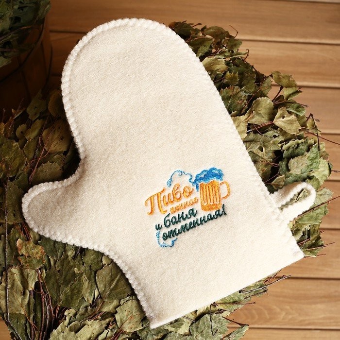 Рукавица для бани войлочная «Пиво пенное — баня отменная!»