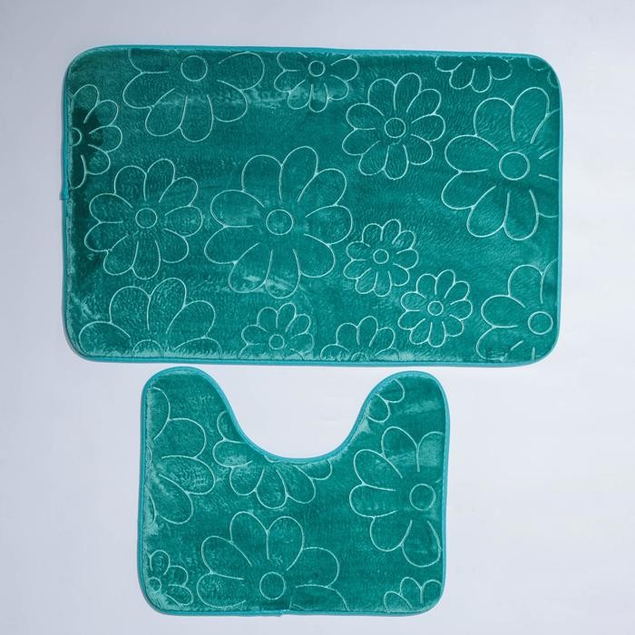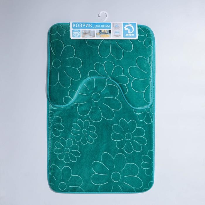 Набор ковриков для ванны и туалета Доляна «Поле», 2 шт: 39×50, 50×80 см, цвет зелёный