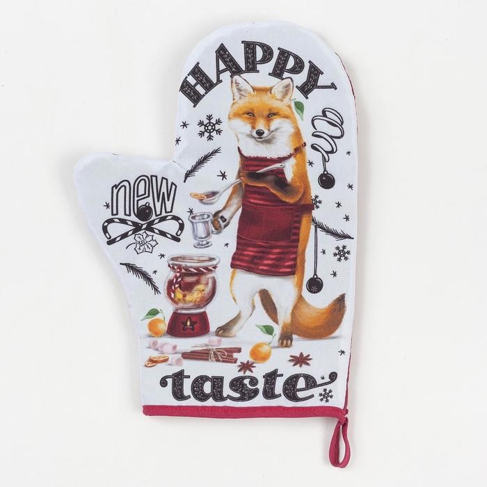 Новогодний набор кухонный Happy new taste: варежка-прихватка 20х28см, прихватка 17×17 35% хл,65% п/э