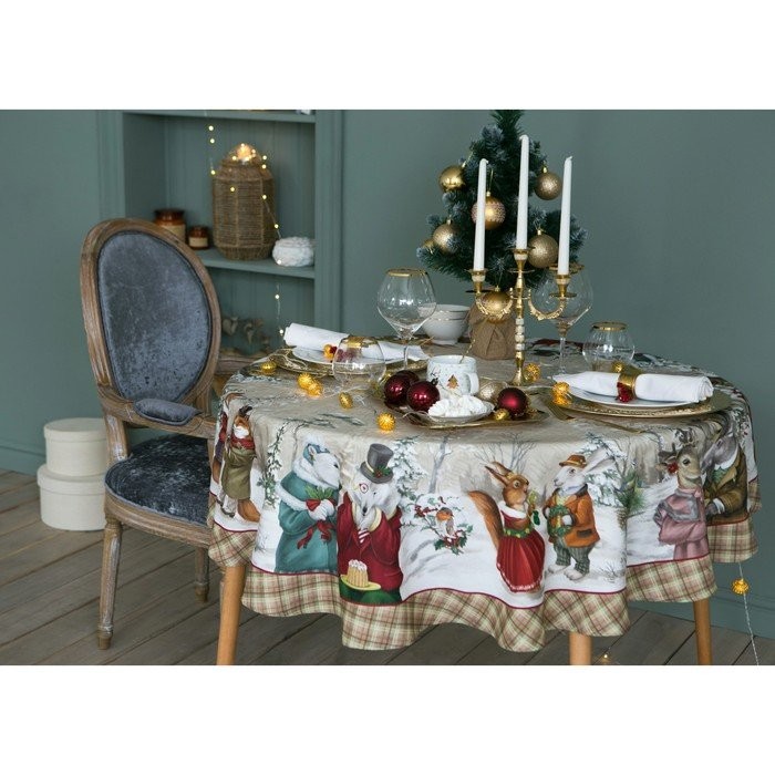 Скатерть «Этель» Winter holidays d=220см +/-3см с ГМВО, 100% хл, саржа 190гр/м2