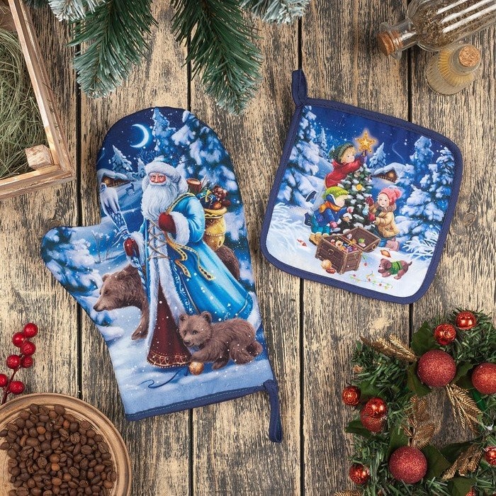 Набор кух. «Новогоднее настроение» варежка-прих.20х28см, прихватка 17×17 35% хл,65% п/э