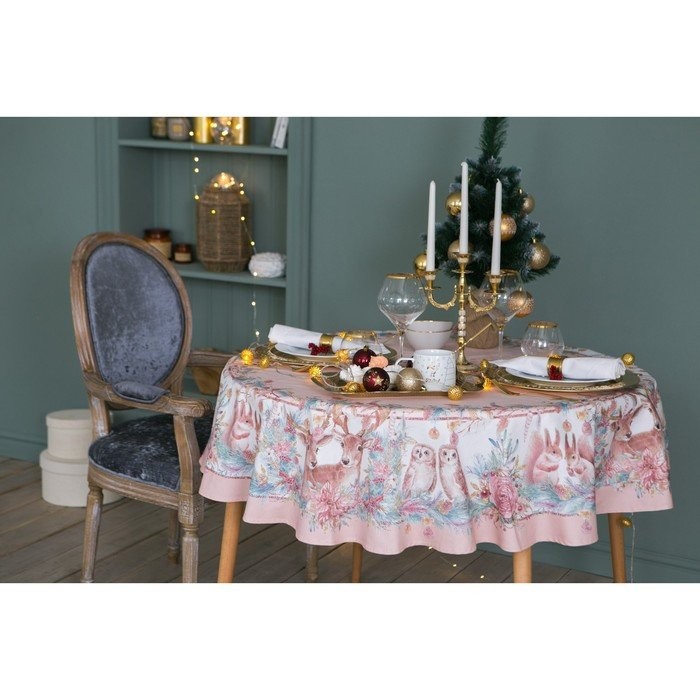 Скатерть «Этель» Pink magic d=220см +/-3см с ГМВО, 100%хл, саржа 190 гр/м2