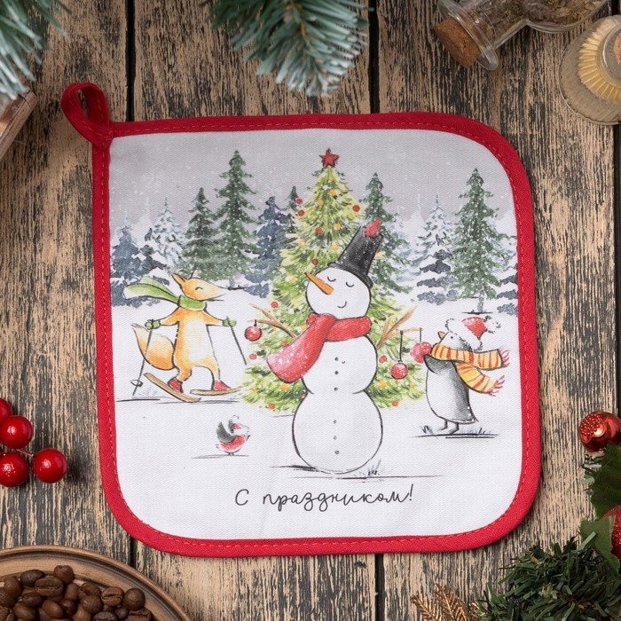 Прихватка «С праздником» 19х19см,100% х/л,ватин 250г/м2