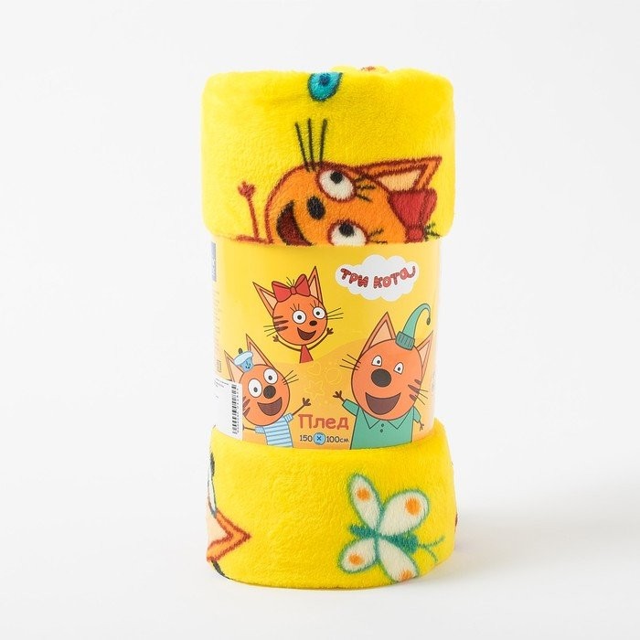 Плед Павлинка Три Кота Игра желтый 100х150см аэрософт, 190г/м пэ100%
