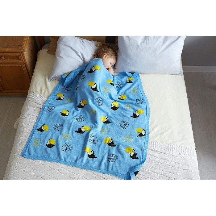 Вязаный плед Крошка Я «Туканы», размер 90×90 см, цвет голубой