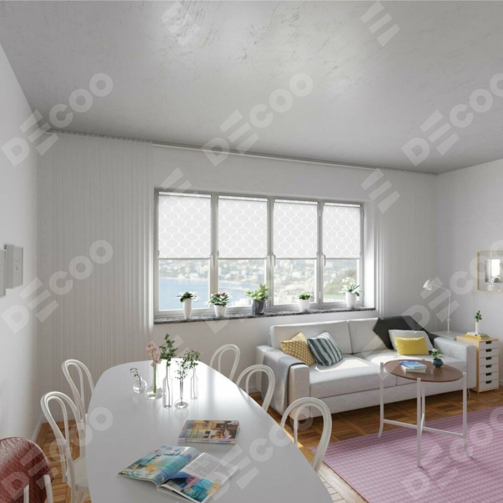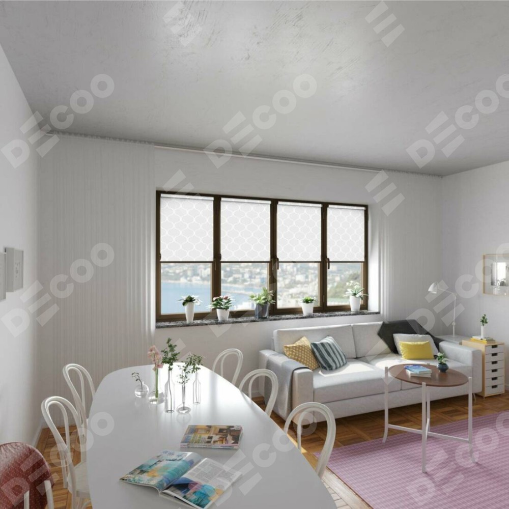 Рулонная штора Мини Касабланка 01 отлично подойдёт для интерьера: для любого интерьера, для беседки и комната.