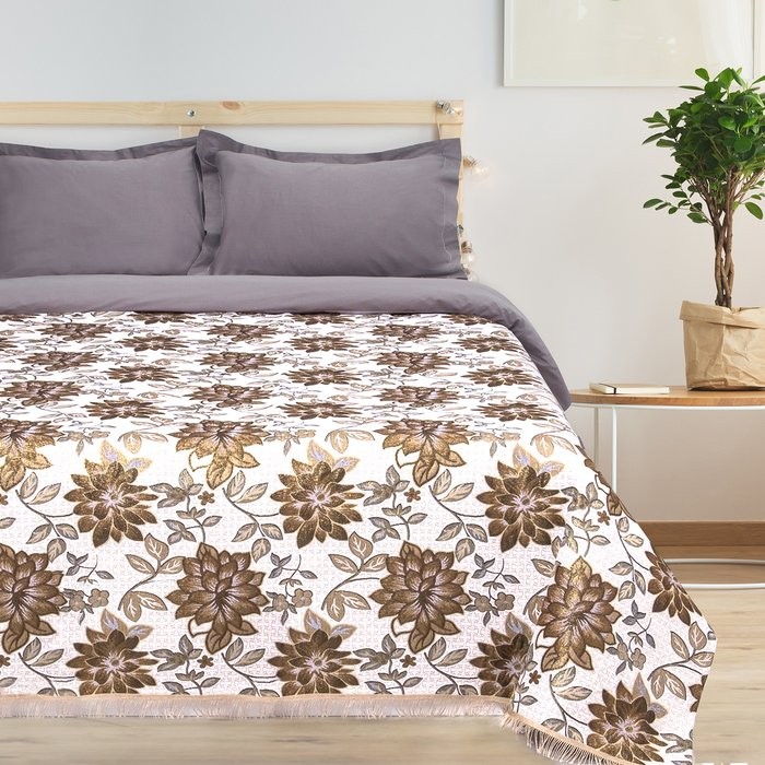 Покрывало гобеленовое Этель «Роскошь» с бахромой, золотой, 140х200см, п/э 80%, хл 20% (450 г/м2)