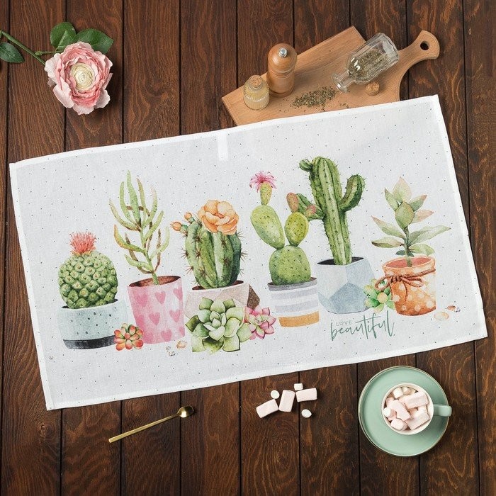 Полотенце «Этель» Кактусы 40×73 см, 100% хл, рогожка 160 гр/м2