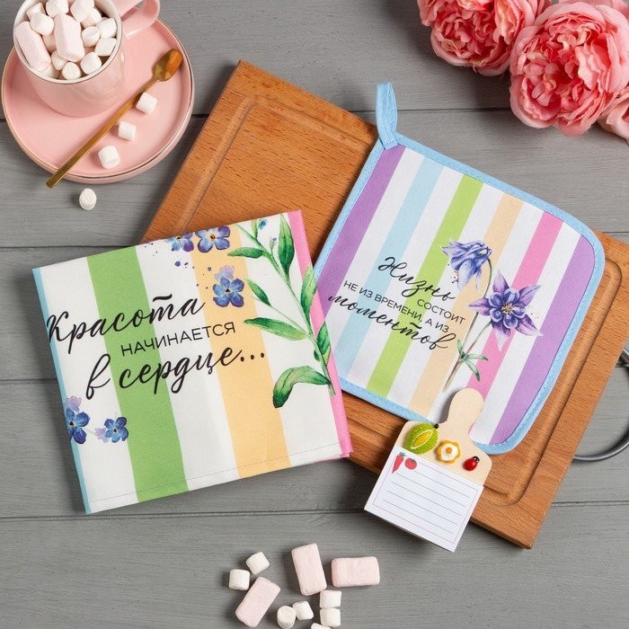 Набор подарочный «Жизнь прекрасна» полотенце 40×73 см, прихватка 19×19 см, магнит 11×7 см
