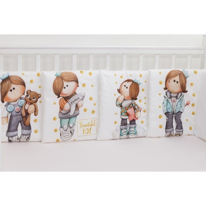 Бортики в кроватку Крошка Я «Принц Тим», цвет белый, 35×35 см-8 шт, сатин