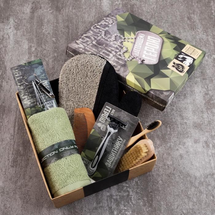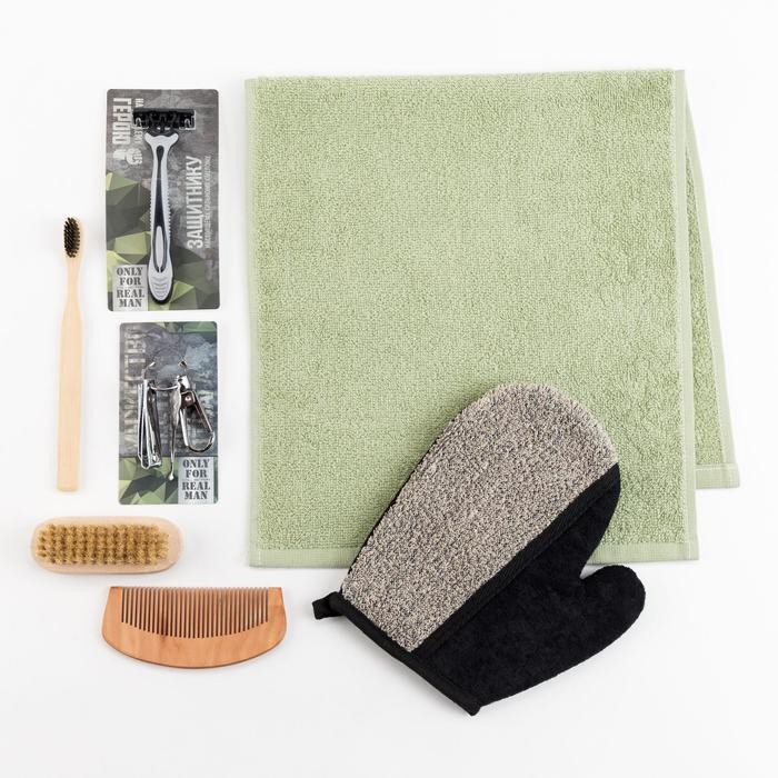 Набор подарочный «Настоящему герою» полотенце и акс (7 предметов)