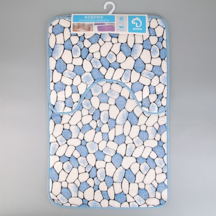Набор ковриков для ванны и туалета Доляна «Галька», 2 шт: 40×50, 50×80 см, цвет синий