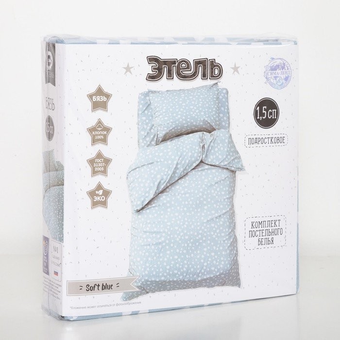 Постельное белье «Этель» 1,5 сп Soft blue 143×215 см, 150×214 см, 50×70 см -1 шт, 100% хл, бязь