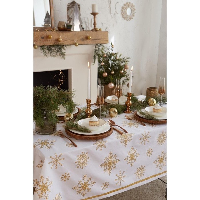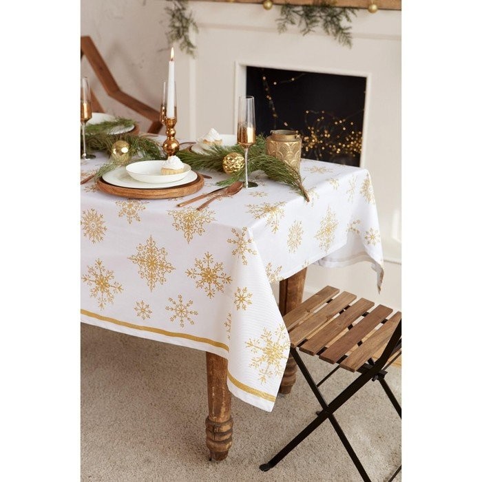 Скатерть «Этель» Золотые снежинки 149х180см, 100%хл, 190г/м2