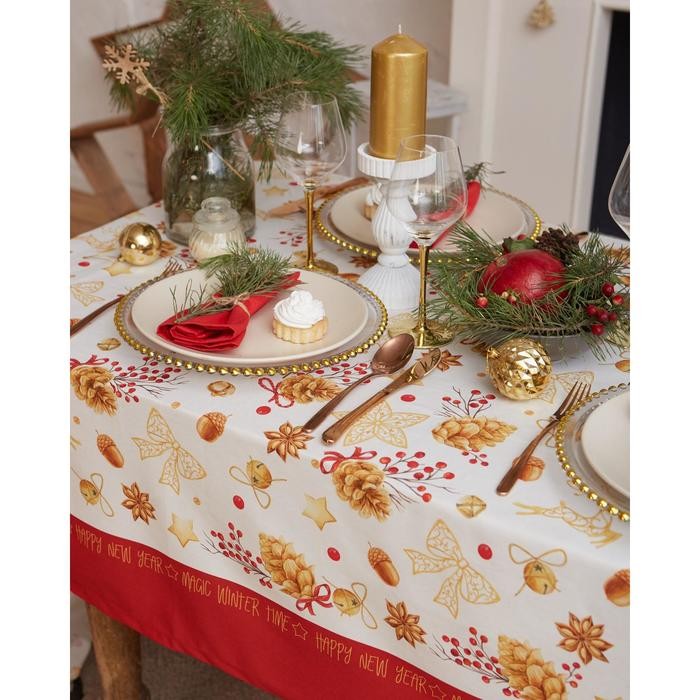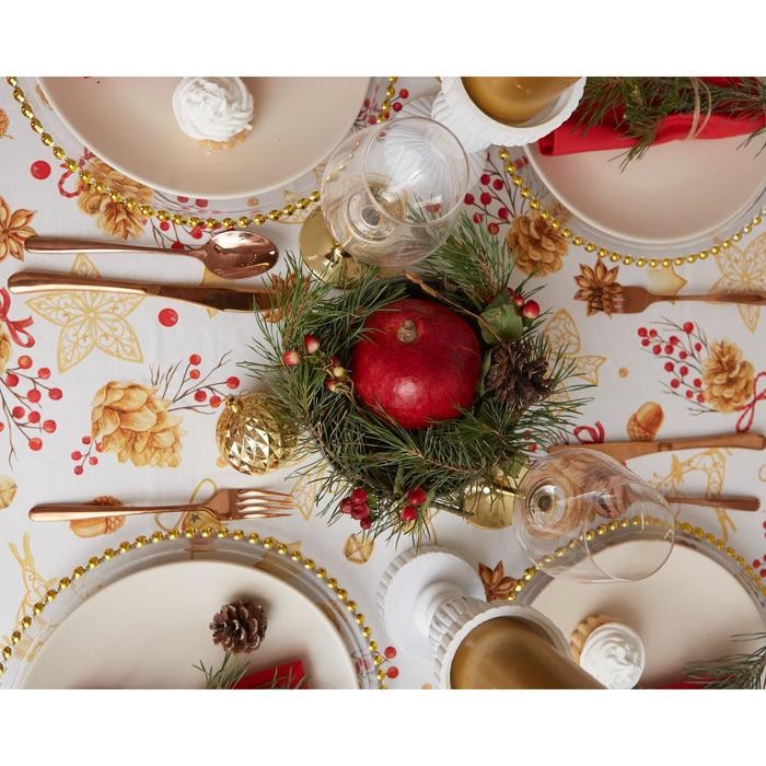 Скатерть «Этель» Golden Christmas 149х220см с ГМВО, 100%хл, 190г/м2