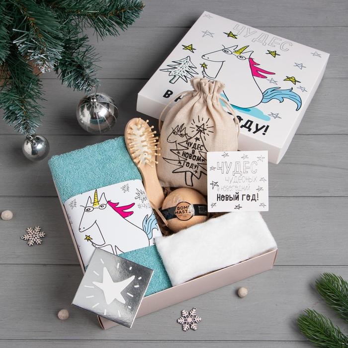 Набор подарочный «Чудес в Новом году» полотенце и аксессуары (4 предмета)