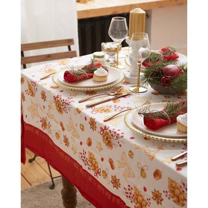 Скатерть «Этель» Golden Christmas 149х250см c ГМВО, 100%хл, 190 г/м2