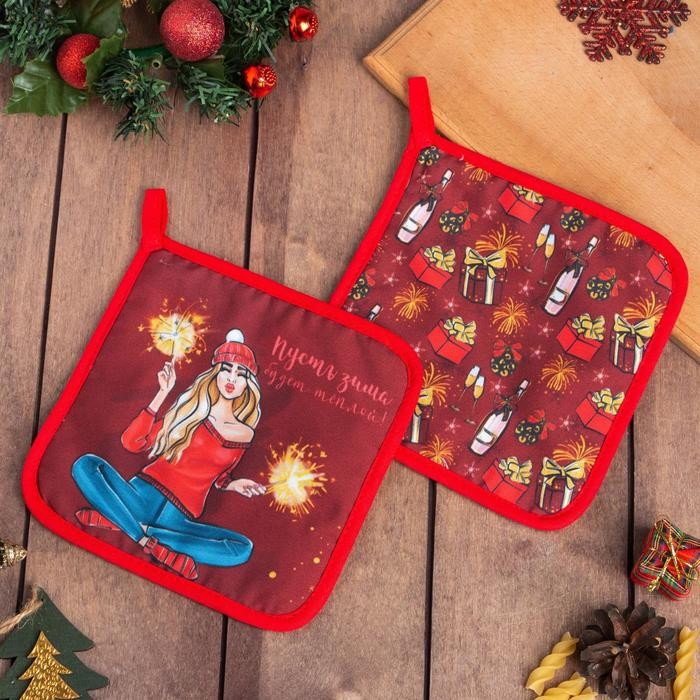 Набор кухонный «Пусть зима будет теплой» прихватка 17×17 — 2шт. 35% хл,65% п/э