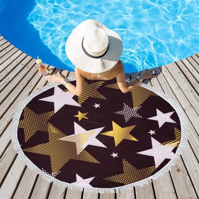 Полотенце пляжное Этель «Золотые звёзды», d 150см