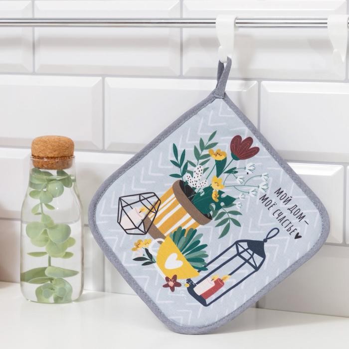 Прихватка «Мой дом — мое счастье» 19×19 саржа,100% х/л,ватин 250г/м2