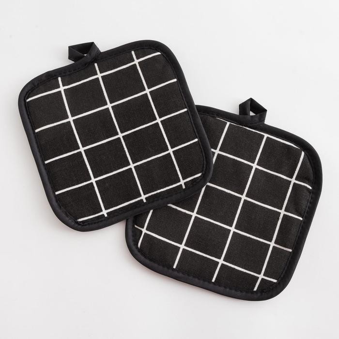 Кухонный набор (2 предмета) Доляна «Клетка», цвет черный, прихватка 17×17 см — 2 шт, 100% п/э