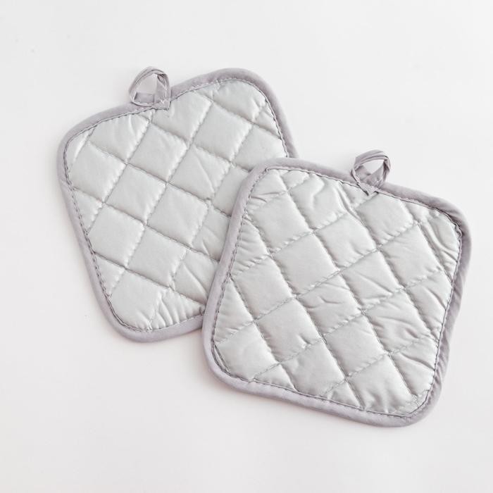 Кухонный набор Доляна «Клетка» цв.серый, прихватка 17*17 см — 2 шт,100% п/э