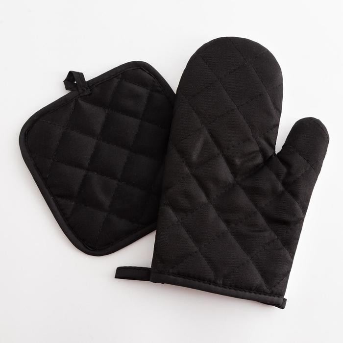 Кухонный набор (2 предмета) Доляна «Горох», цвет черный, прихватка 17×17 см, рукавичка 26×16 см, 100% п/э