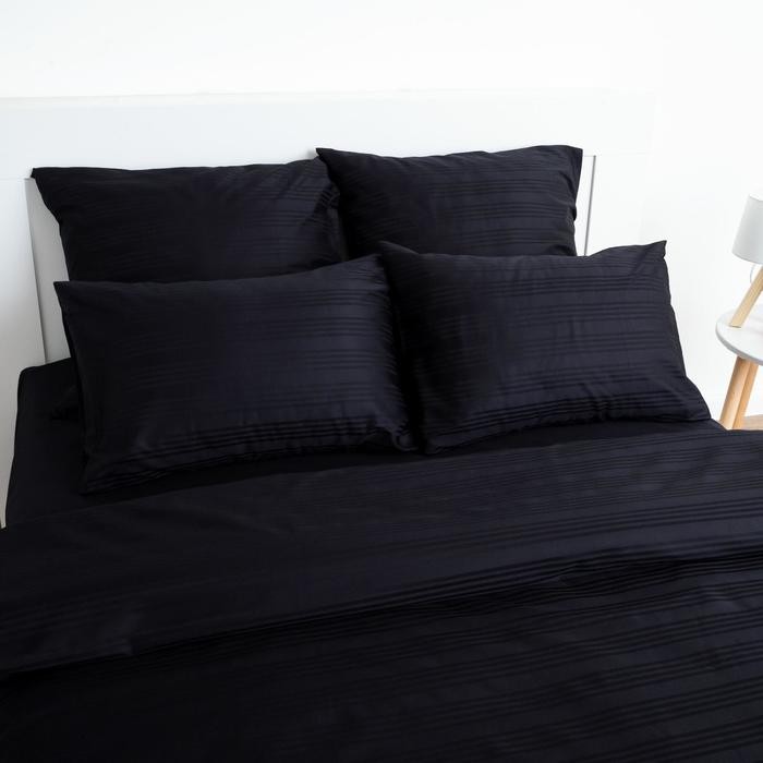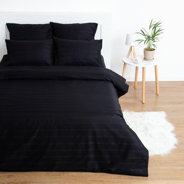 Материал наволочек и пододеяльника: страйп-сатин. Материал простыни: мако-сатин.
