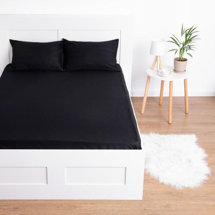 Простыня на резинке Этель 180*200*25 см, цв.черный, 100% хлопок, мако-сатин, 125 г/м²